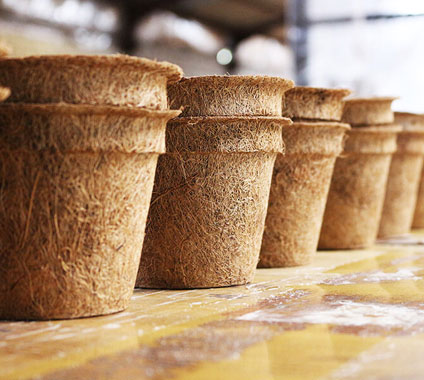 Coir pots are made up of the coconut hull that is derived from the fibrous body between the husk and the coconut. Coir pots are completely bio-degradable and readily transform into organic matter on decomposing. Made from outer husk fibre of coconuts, coir pots provides myriad of benefits to the gardener as well as the plants.